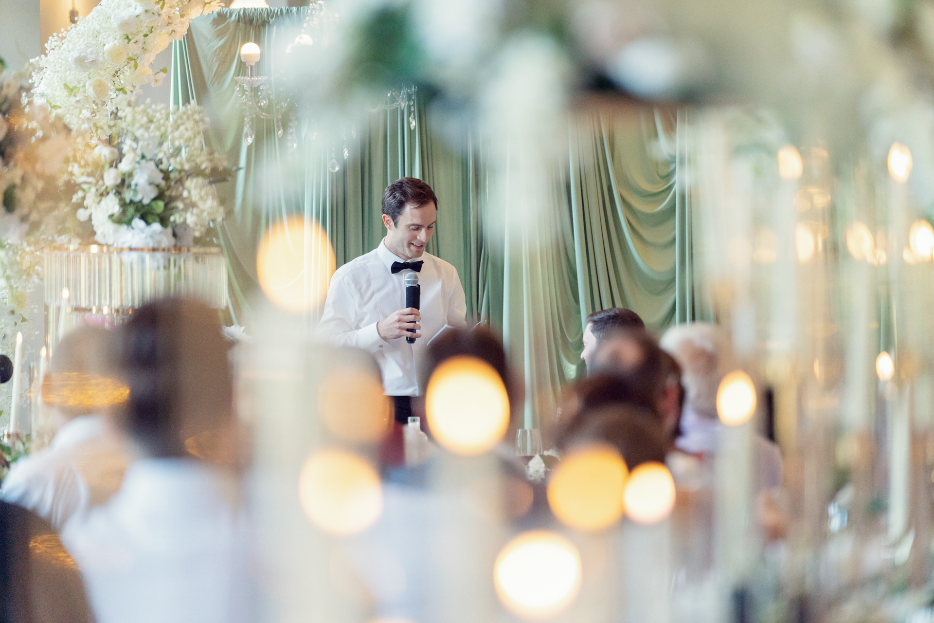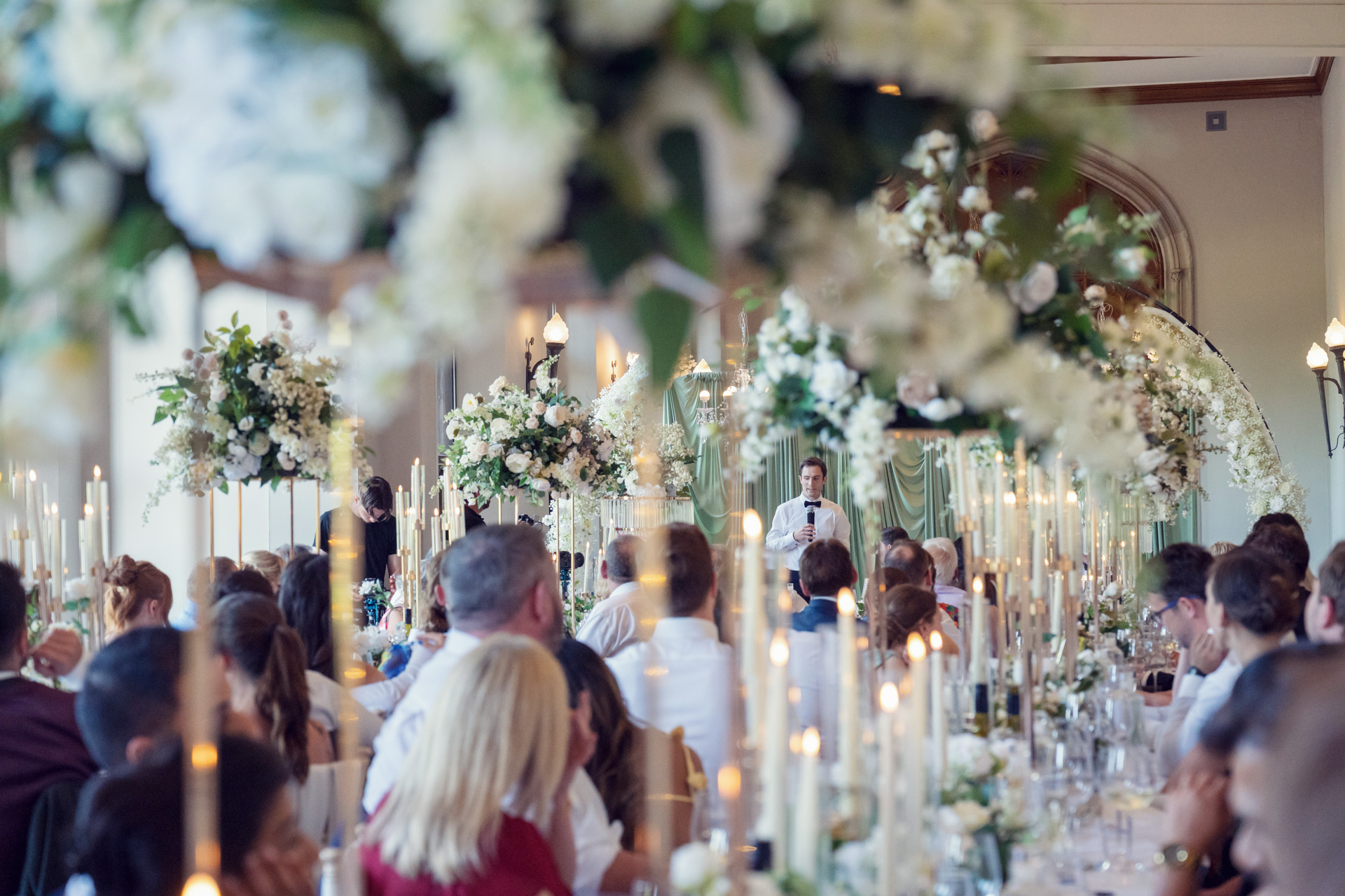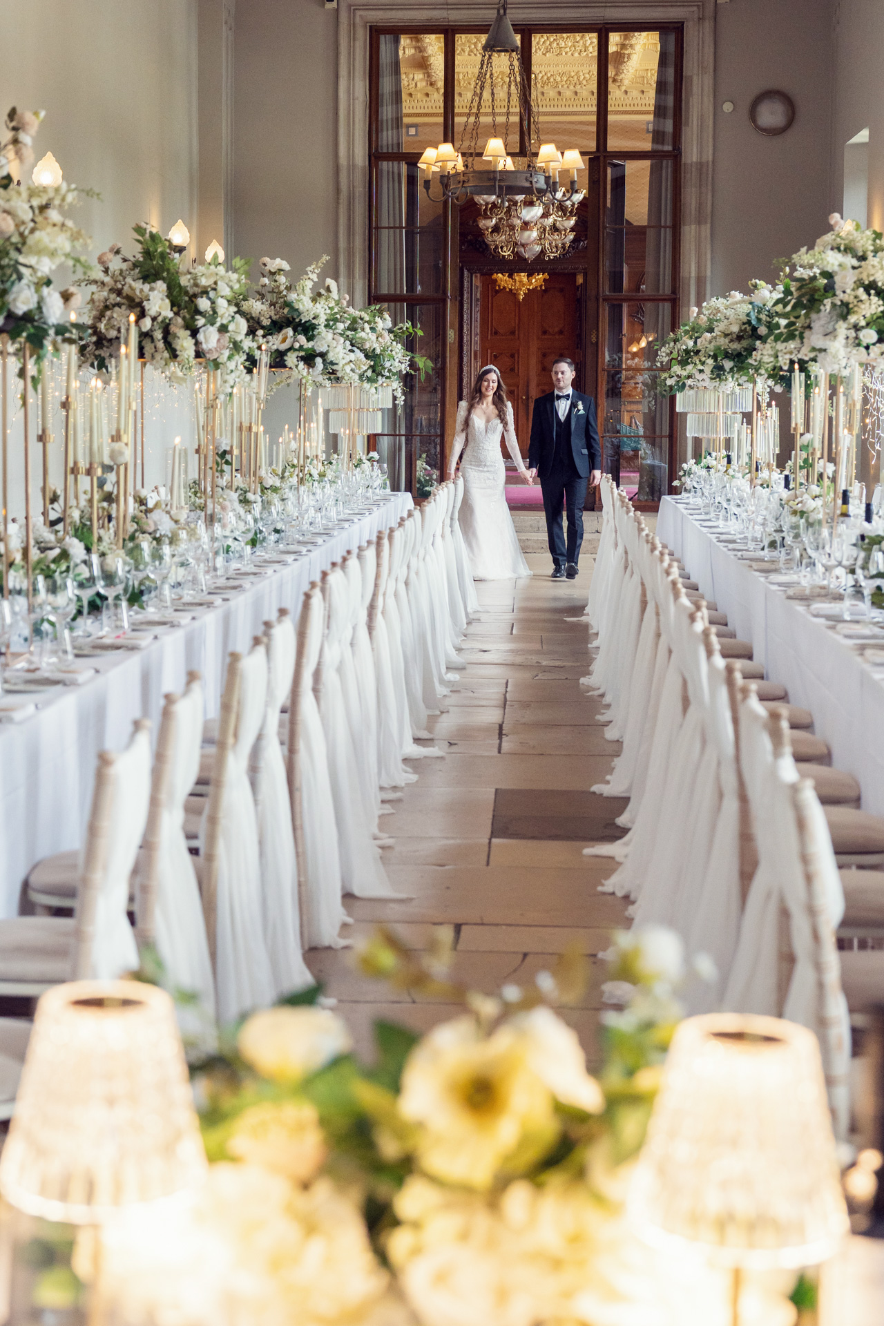 Amy wore the most stunning Pronovias wedding dress, transformed throughout the day with a beautifully detailed overskirt that added drama and movement for the ceremony, before revealing a sleeker silhouette later on. It was a perfect reflection of the day itself — refined, thoughtful, and quietly striking.