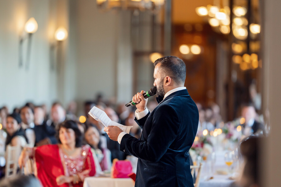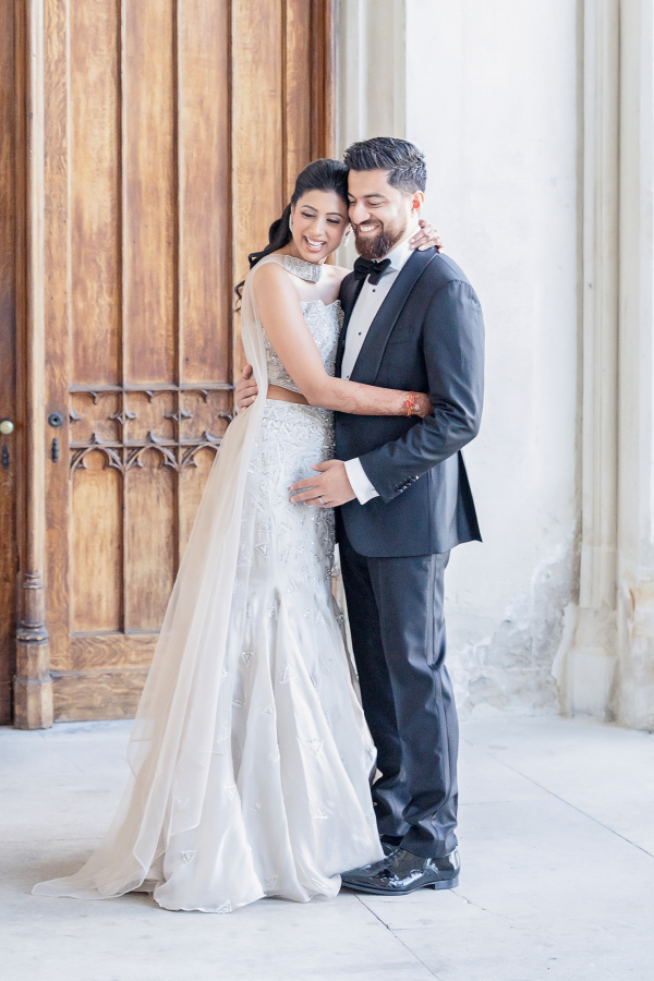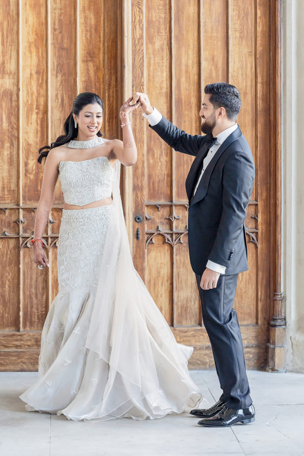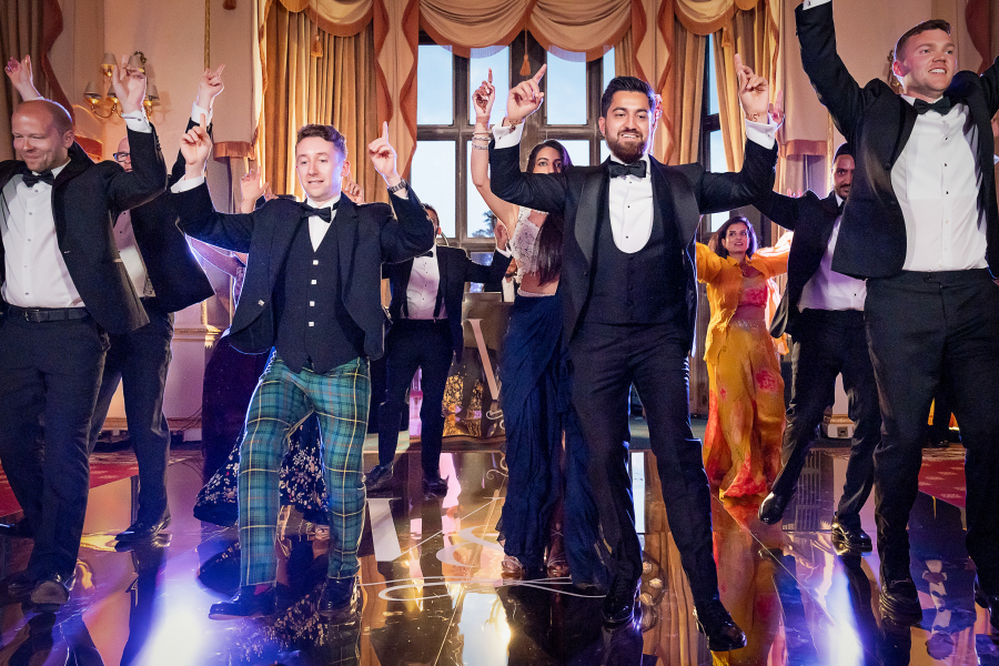 As evening arrived, the couple both got changed and had a gorgeous first look – both loving the complete contrast of their evening outfits from the day. The traditional dance-offs were amazing and exuberant group dancing took over, with guests fully embracing the music – again accompanied by the Dhol drummers.